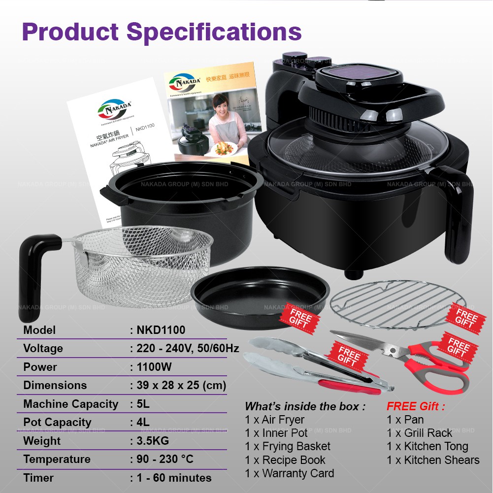Nakada 5 Liter Xl Air Fryer Nkd1100 Free 5pcs Flora Container Fg035 Lazada