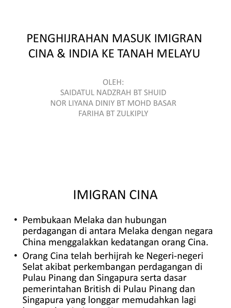 Cara Kemasukan Imigran Cina Dan India Ke Tanah Melayu
