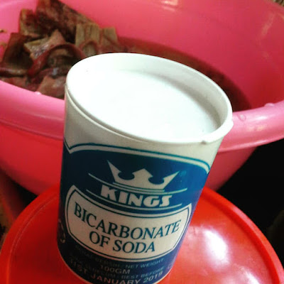 Aha sudah tentu rahsianya ialah melembutkan daging sotong kering itu terlebih dahulu. Sotong kering memang sedap jika dibuat sambal tumis. Masukkan air abu dan air paip ke dalam bekas untuk merendam sotong kering.
