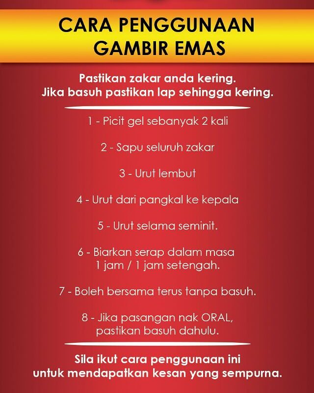Untuk tujuan urutan gel gambir emas seelok eloknya digunakan 2 kali sehari selepas mandi pada waktu pagi dan juga petang. Show more show less. Air mani tetap akan keluar kalau anda tak control.