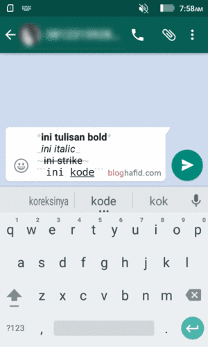 Dengan update tersebut pengguna kini bisa melakukan formatting text atau customize format huruf seperti cetak tebal bold miring italic dan teks yang dicoret strikethrough. Kemudian taip perkataan atau ayat diingini di kotak teks yang disediakan. Tapi kalau mau anda juga bisa coba beri tanda bintang misalnya kalimat whatsapp.