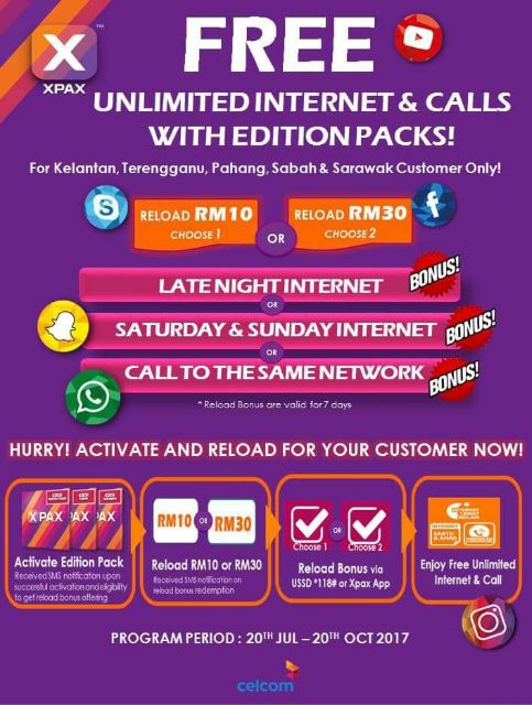 Xpax edition pack rm10 00 new xpax edisi pantai timur terbaru dan terhangat dari celcom dipasaran bermula hari ini 1 hanya di pantai timur sabah sarawak shj 2 negeri lain tidak mendapat tawaran ini. Internet untuk facebook 10gb sebulan. If can keep until years 2020 consider good ady.