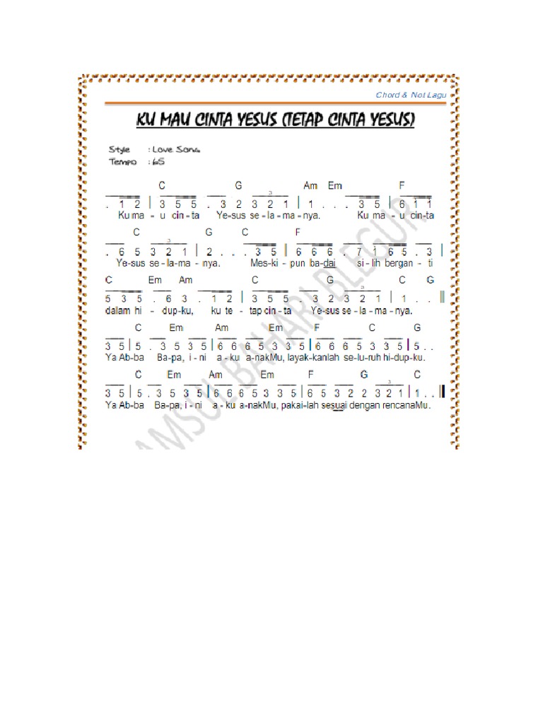 Ku Mau Cinta Yesus Chord Lirik Chord Musik