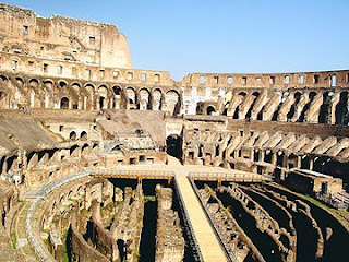 Di bawah arena terdapat ruang bawah tanah tempat gladiator dan hewan buas. Koloseum pentas besar bahasa latin. Air tersebut dibawa dari sumbernya di gunung.