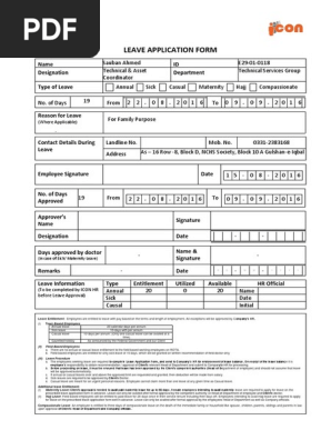 Leave Application Form Sick Leave Parental Leave