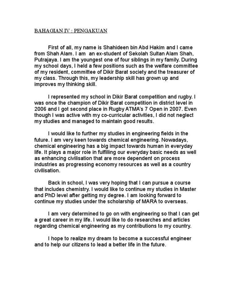 Contoh Karangan Perihal Diri Untuk Pinjaman Mara Dalam Bahasa Inggeris