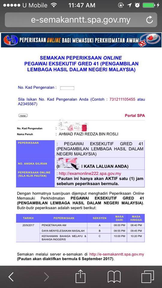 Semakan Peperiksaan Online Pegawai Eksekutif Gred 41 Pengambilan Lembaga Hasil Dalam Negeri Malaysia Uyulrosli Dot Com