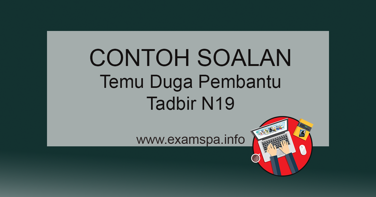 Contoh soalan temuduga pembantu tadbir n19. Bagi anda yang telah lulus peperiksaan online untuk jawatan pembantu tadbir perkeranian operasi n19 anda pasti telah menerima sms dan email temuduga pembantu tadbir n19 dari pihak spa. Bukan jawatan dalam sektor kerajaan sahaja ada jawatan pembantu tadbir dalam sektor swasta juga ada jawatan ini yang biasanya dipanggil admin. Anda akan menerima maklumat peperiksaan pembantu tadbir n19 beserta contoh soalan peperiksaan pembantu tadbir n19 dan jawapan sebagai persediaan anda.
