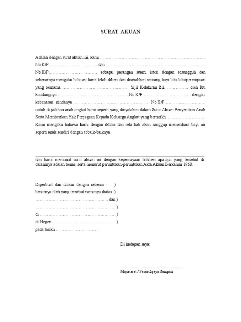 20 Surat Akuan Contoh Surat Hak Penjagaan Anak