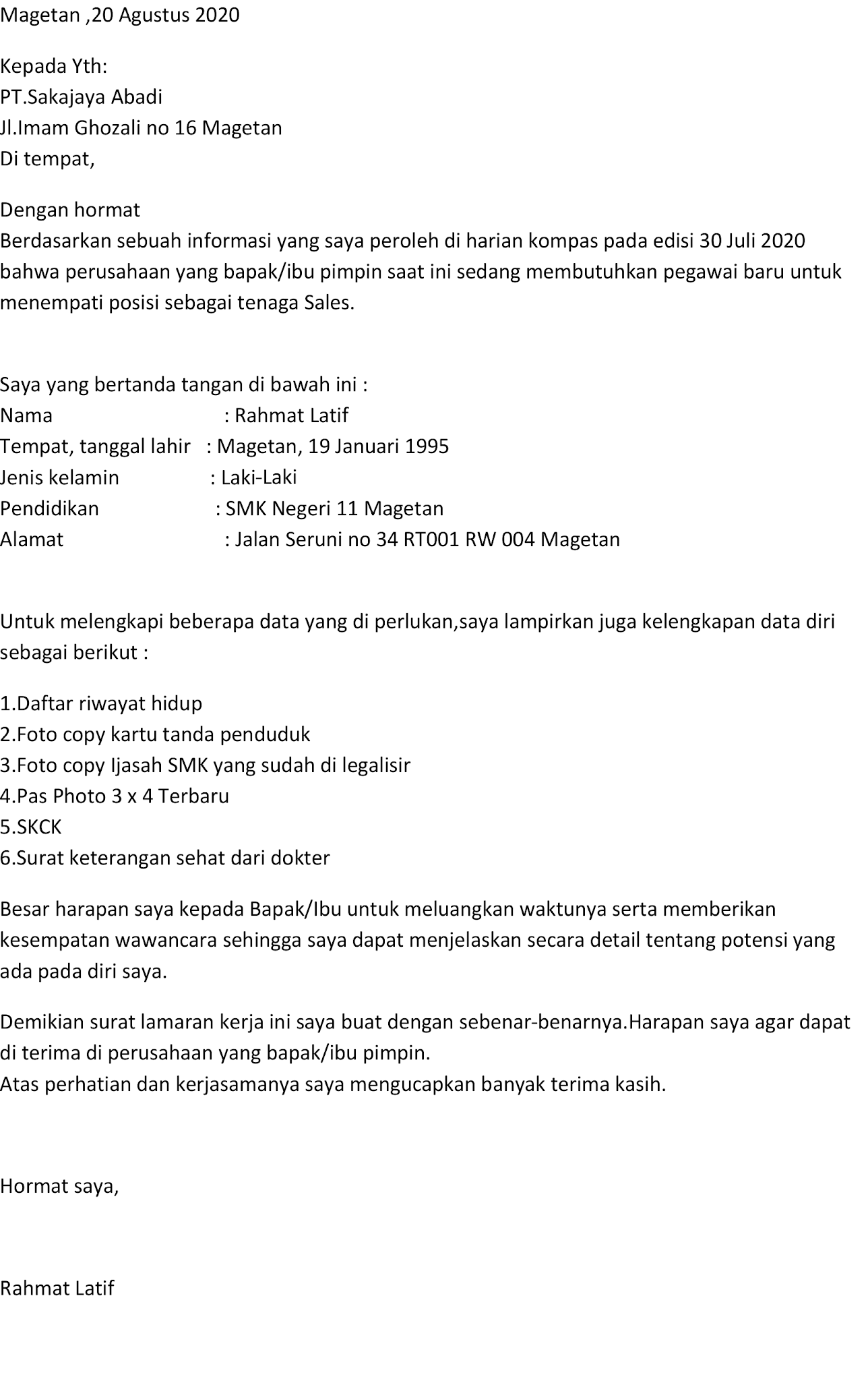 Contoh Surat Lamaran Kerja Di Pt Pwi Jepara