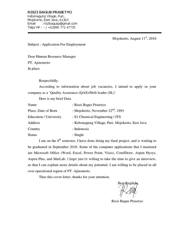 Kumpulan Contoh Surat Lamaran Kerja Bahasa Inggris Recommended