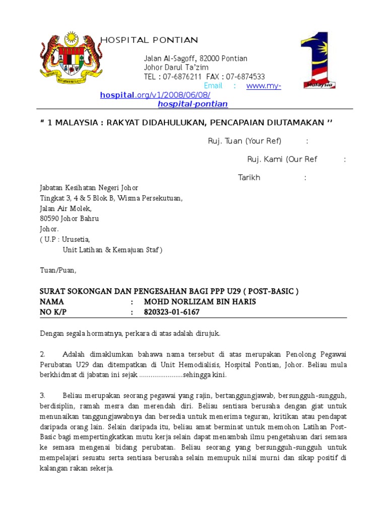Contoh Surat Sokongan Ketua Jabatan Picture Places Some Pictures New Pictures