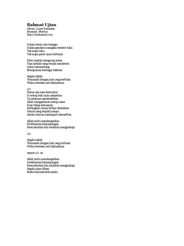Lirik dan chord lagu seberkas kisah lalu milik ada band seberkas kisah lalu merupakan singel milik grup musik ada band yang dirilis pada 2003 dalam album mereka bertajuk metamorphosis. Yang lemah menjadi mangsa anak anak kecil menggoncangkan ibunya yang lemah longlai tak lagi bernyawa jeritan suara batinnya tak siapa mendengarnya tergadaikan maruah oleh janji janji terbayarkah dengan nyawa dan darah soalan yang tiada jawaban kemanusiaan telah lama hilang kini yang tinggal hanya ketakutan musnah kasih sayang dan persaudaraan. Semangat yang hilang oh.