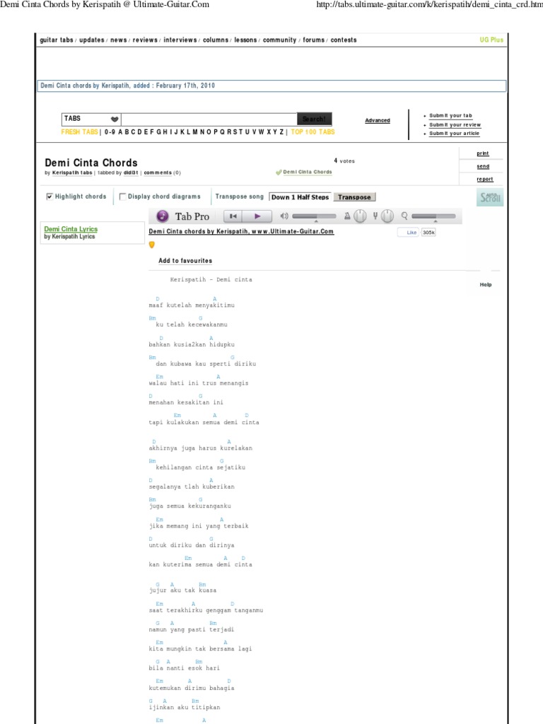 Demi Cinta Chords By Kerispatih Ultimate Guitar