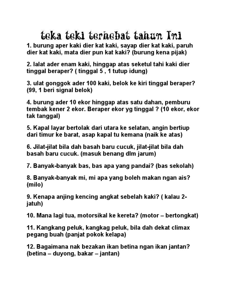2 helai daun kunyit di koyak rabak kan. Rodanya dua kakinya lapan kereta lembu 236. Kami mengumpulkan soal dan jawaban dari tts teka teki silang populer yang biasa muncul di koran kompas jawa pos koran tempo dll.