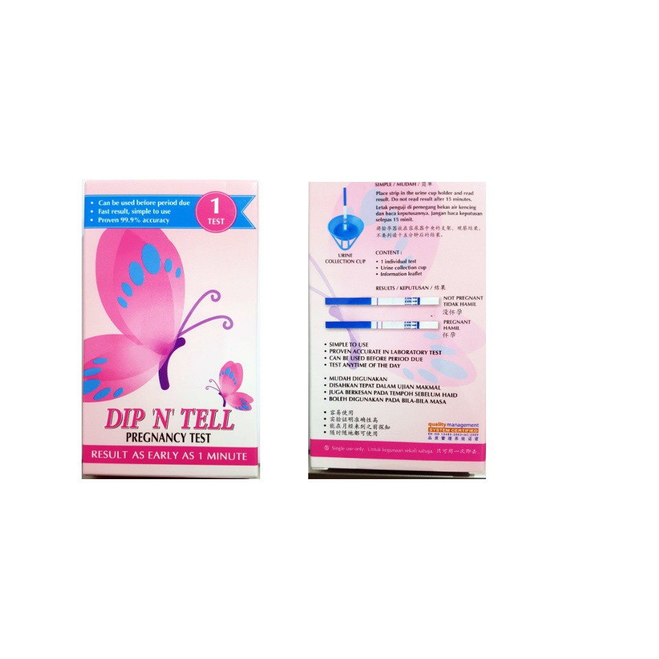Buy dip n tell pregnancy test 2 tests with free urine cup inside lots of discount and promotional sales. Dip n tell was launched in malaysia in 1985 and has been the leading brand since then. If you have missed your period if you are urinating frequently.