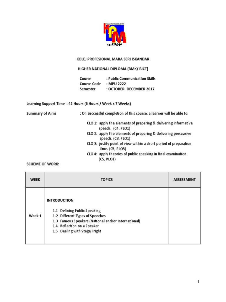 Scheme Of Work Public Speaking Class Kpm Public Speaking Communication