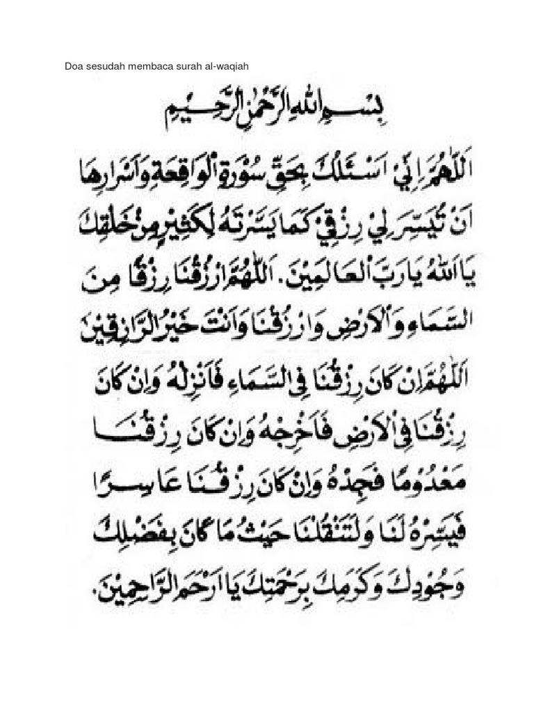 Bacaan Dan Tulisan Berguna Mungkin Do A Sesudah Membaca Surat Al Waqiah Tulisan Surat Membaca
